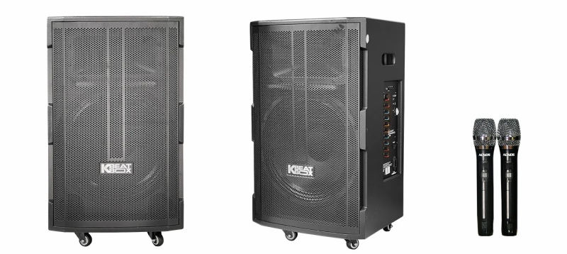 Loa kéo được trang bị hai tay mic không dây, khi biểu diễn hoàn toàn có thể tự do ca hát mà không bị giới hạn khoảng cách như mic có dây. Micro có tay cầm là từ vật liệu nhôm cao cấp, củ mic hút tiếng, lấy nhẹ hơi cũng có thể hát được, nâng giọng hát karaoke chuyên nghiệp với bất kì ca khúc nào.