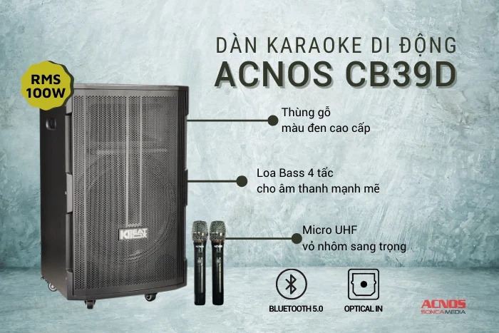 Loa Kéo Acnos CB39D được ví như một dàn karaoke mini di động được hãng Acnos vừa mới cho ra mắt thị trường, dàn loa di động Acnos CB39D kế thừa đầy đủ những ưu điểm vượt trội của các mẫu loa kéo thế hệ trước được người dùng yêu thích, thêm vào đó là những tính năng mới mẻ cùng công nghệ sản xuất mới nhất Loa Kéo Acnos CB39D hứa hẹn mang tới trải nghiệm âm thanh thú vị.