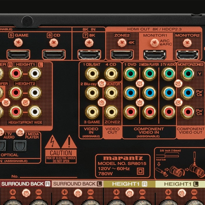 Sở hữu 8 ngõ vào HDMI với hỗ trợ HDCP 2.3 (High-Bandwidth Digital Content Protection), SR8015 cho phép người dùng xem được những nội dung bản quyền, đồng thời có thể truyền tải video với chất lượng cao HD, 4K, lên đến 8K/60Hz. Đặc biệt hơn, SR8015 còn có khả năng nâng cấp độ phân giải HD và 4k lên độ phân giải 8K.Ngoài ra, SR8015 còn được trang bị tính năng eARC (Enhanced Audio Return Channel) ở 1 ngõ ra HDMI, giúp truyền âm thanh 3D từ TV đến ampli rồi khuếch đại ra loa, mang đến trải nghiệm sống động nhất.
