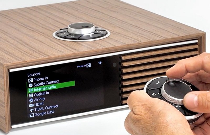 Mọi tương tác đều tập trung vào màn hình màu TFT 5 inch sắc nét, hiển thị đầy đủ thông tin từ ảnh bìa album đến các cài đặt. Đi kèm là núm xoay RotoDial – biểu tượng của Ruark – mang lại trải nghiệm điều khiển vật lý mượt mà và trực quan.