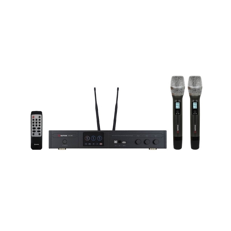 Đi kèm với Sumico KA-400 là bộ đôi micro không dây UHF ổn định với 200 kênh lựa chọn, triệt tiêu hoàn toàn hiện tượng nhiễu sóng hay trùng tần số. Micro có độ nhạy thu âm tốt, tái tạo giọng hát trung thực và dễ dàng hòa vào bản nhạc thông qua bộ xử lý DSP tích hợp.