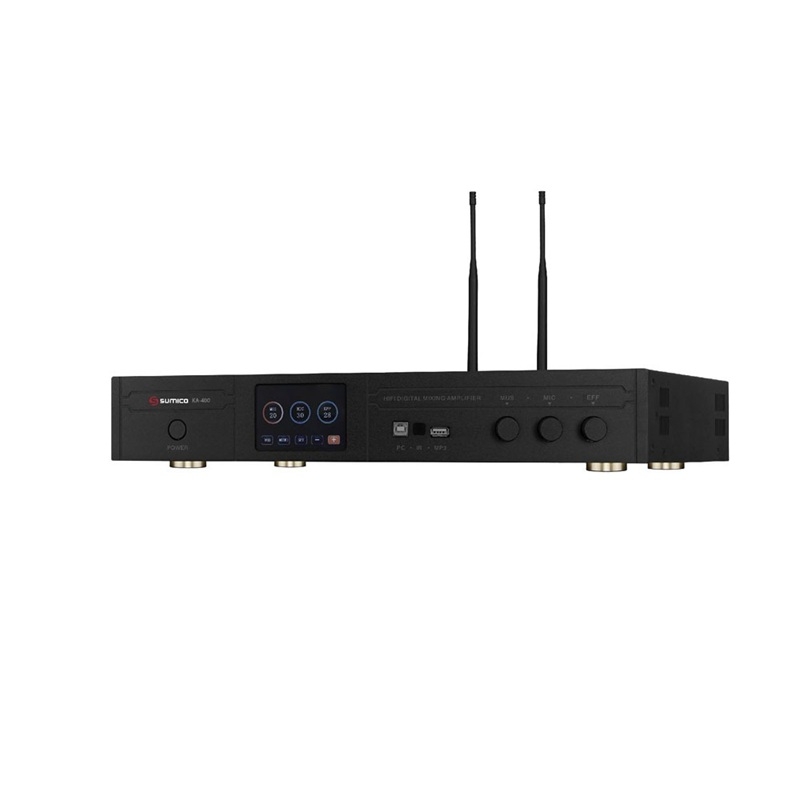 Sumico KA-400 là giải pháp khuếch đại âm thanh hiện đại sở hữu công suất 400W/kênh mạnh mẽ, vang số và micro không dây trong cùng một thiết bị duy nhất. Với khả năng xử lý âm thanh 24-bit/192kHz, amply KA-400 giải quyết tốt mọi nhu cầu từ hát karaoke, nghe nhạc đến xem phim tại gia.