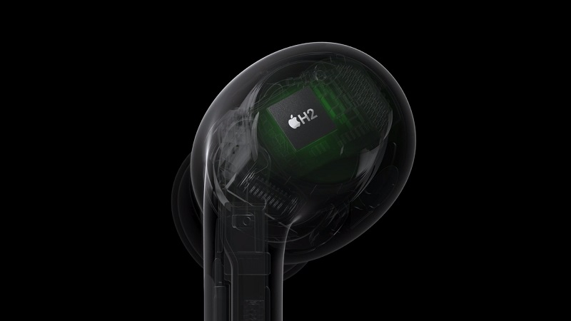 Apple AirPods Pro 2 được trang bị chip H2 - con chip mới được nghiên cứu và phát triển giúp cải thiện chất lượng âm thanh giúp giảm thiểu tình trạng méo tiếng để có âm trầm sâu cùng âm cao rõ nét. Song, khả năng chống ồn chủ động trên AirPods Pro 2 cũng được cải thiện đáng kể. Cụ thể ANC và thuật toán cùng phần cứng mới được cải thiện gấp 2 lần so với AirPods Pro đời đầu.