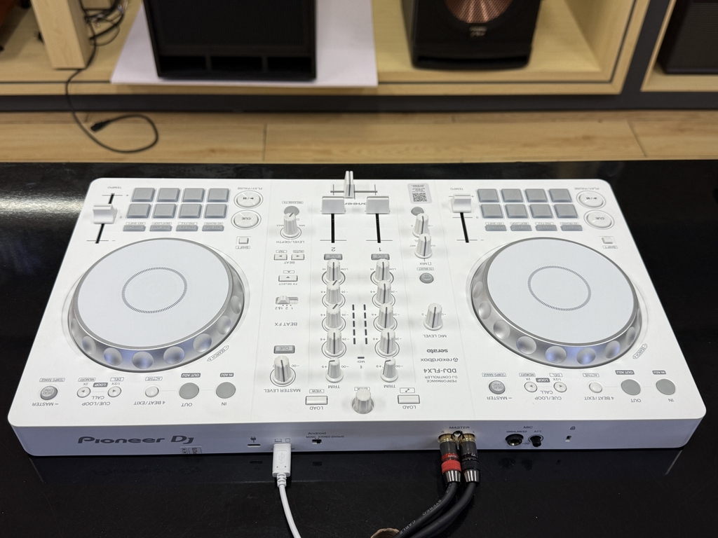 Bên cạnh đó, nhờ tích hợp card âm thanh, DDJ-FLX4 có thể kết nối trực tiếp với loa hoặc amply thông qua cáp RCA. Tính năng từ Rekordox DJ cho phép bạn sử dụng cổng USB thu âm lại bản mix trực tiếp.