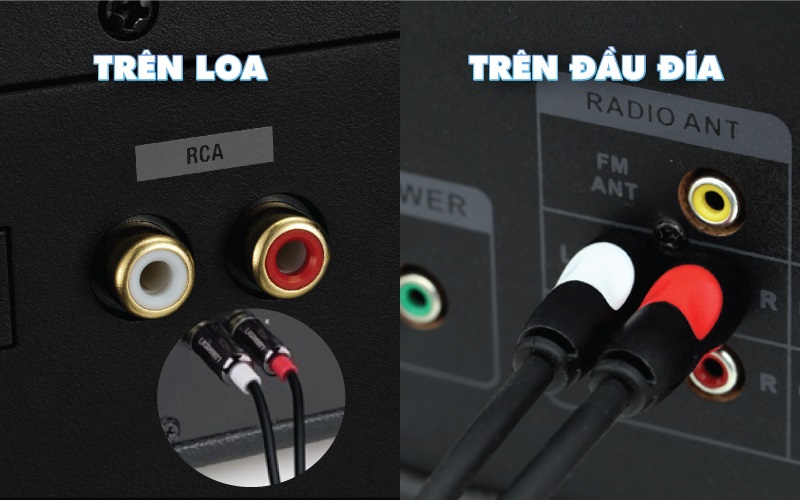 Thực tế RCA cũng giống như AUX. Tuy nhiên cổng RCA ở phía sau nên dây nối sẽ gọn gàng và thẩm mỹ hơn. Và cáp RCA cũng không được cho sẵn nên bạn phải tự chuẩn bị.