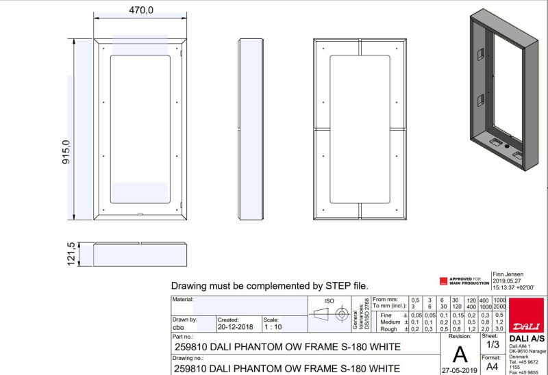 Các khung treo tường này có thể được treo ở vị trí ngang/dọc theo tùy chọn của người dùng bởi chúng có đầu vào để đi dây ở tất cả các mặt của khung. Phantom Ow Frame S-180 có màu trắng, dễ dàng bài trí ở mọi không gian.