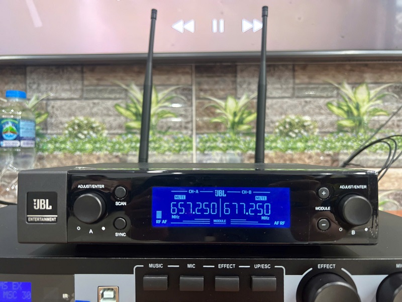 JBL VM200 (Micro không dây chuyên dụng): Đây là hệ thống micro không dây cao cấp với công nghệ bắt âm nhạy bén và khả năng chống hú rít hiệu quả. VM200 có nhiệm vụ chuyển đổi giọng hát một cách chân thực và hỗ trợ người dùng ca hát nhẹ nhàng, truyền cảm, là cầu nối hoàn hảo giữa người hát và hệ thống xử lý.