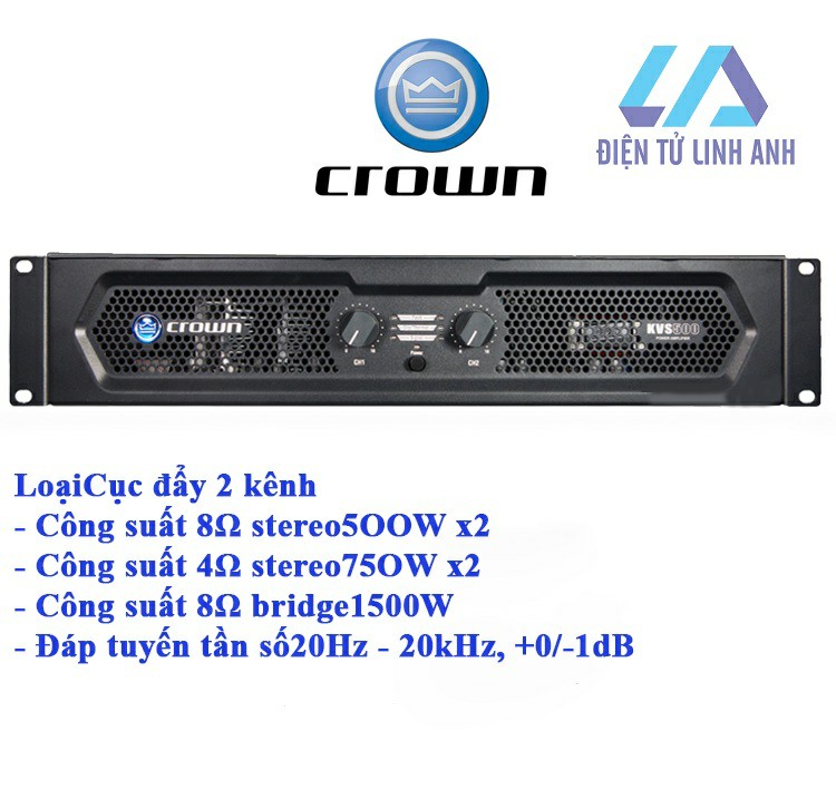 Cục đẩy Crown KVS 500 với công nghệ tiên tiến, hiện đại bậc nhất của thương hiệu Crown danh tiếng sẽ mang tới một nguồn năng lượng dồi dào, đảm bảo chất lượng âm thanh cao nhất để hệ thống loa chạy hay nhất. Sản phẩm KVS500 của Crown rất phù hợp với những đôi loa full đôi bass 40 hay 4 tấc cho karaoke, sân khấu nhỏ, hội trường, bar, club...