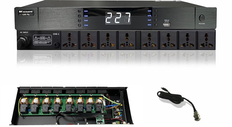 Thiết bị có 8 ổ cắm độc lập, hiển thị điện áp đầu vào theo thời gian thực, tự động ngắt khi điện áp vượt ngưỡng. Đây là giải pháp không thể thiếu để dàn âm thanh hoạt động bền bỉ, ổn định trong thời gian dài.
