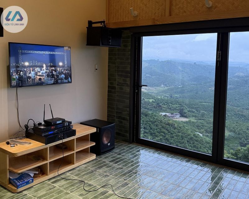 Đội ngũ kỹ thuật của Linh Anh tiến hành khảo sát không gian, tư vấn cấu hình tối ưu và lắp đặt trong thời gian ngắn. Hệ thống được căn chỉnh theo đúng điều kiện phòng thực tế để đảm bảo chất lượng âm thanh tốt nhất cho khách hàng.