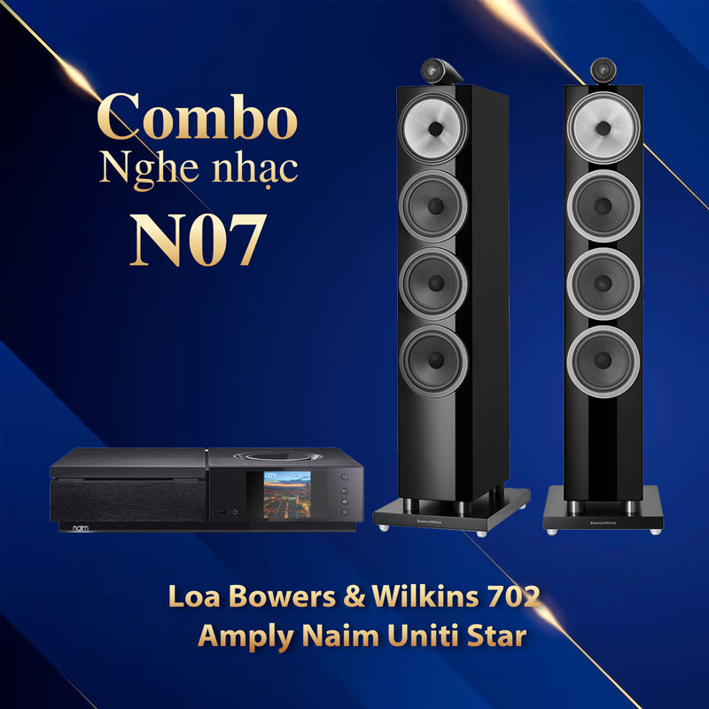 Với kết cấu tinh gọn bởi sự kết hợp hoàn hảo của hai thiết bị cao cấp B&W 702 S3 và Naim Uniti Star, dàn âm thanh N07 hoạt động với công suất mạnh mẽ cùng khả năng trình diễn ấn tượng hứa hẹn sẽ đem chất âm tinh tế và thuần khiết nhất lấp đầy không gian giải trí của bạn.