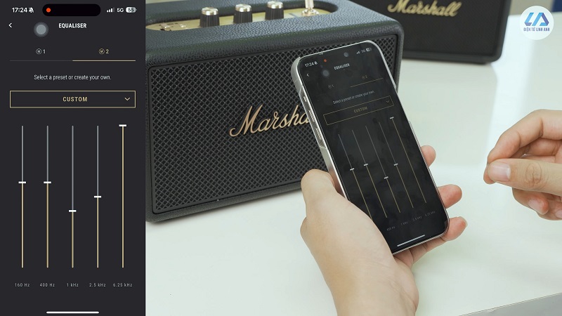 - Về việc chỉnh EQ: Trên app, Marshall cung cấp một EQ mặc định do hãng tinh chỉnh và một EQ tùy chỉnh, cho phép người dùng tự điều chỉnh bass và treble theo gu nghe của mình