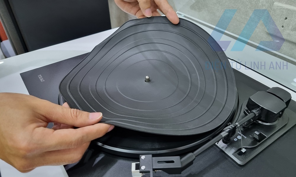 Lắp miếng lót cao su lên trên mâm quay đầu đĩa than Teac-tn180bt