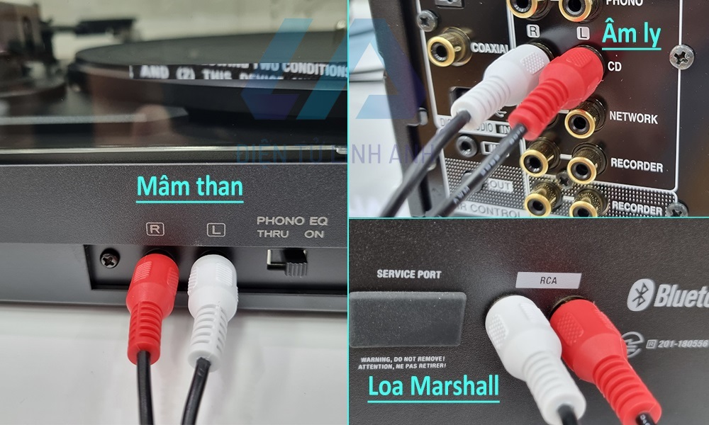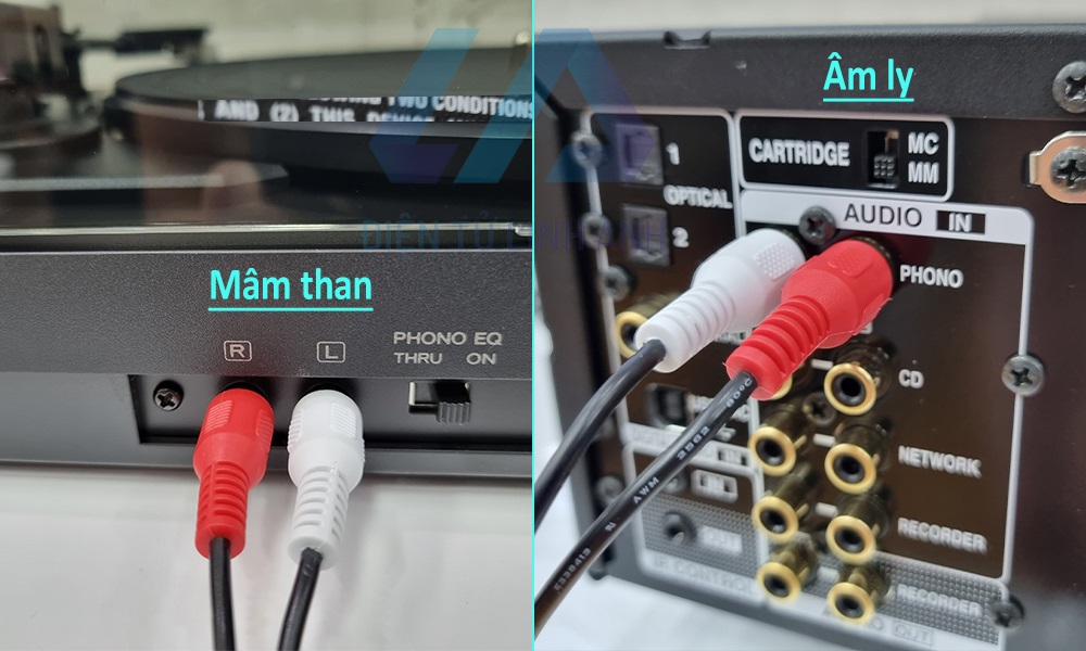 - Chọn đầu vào âm thanh trên loa hoặc âm ly sang Phono