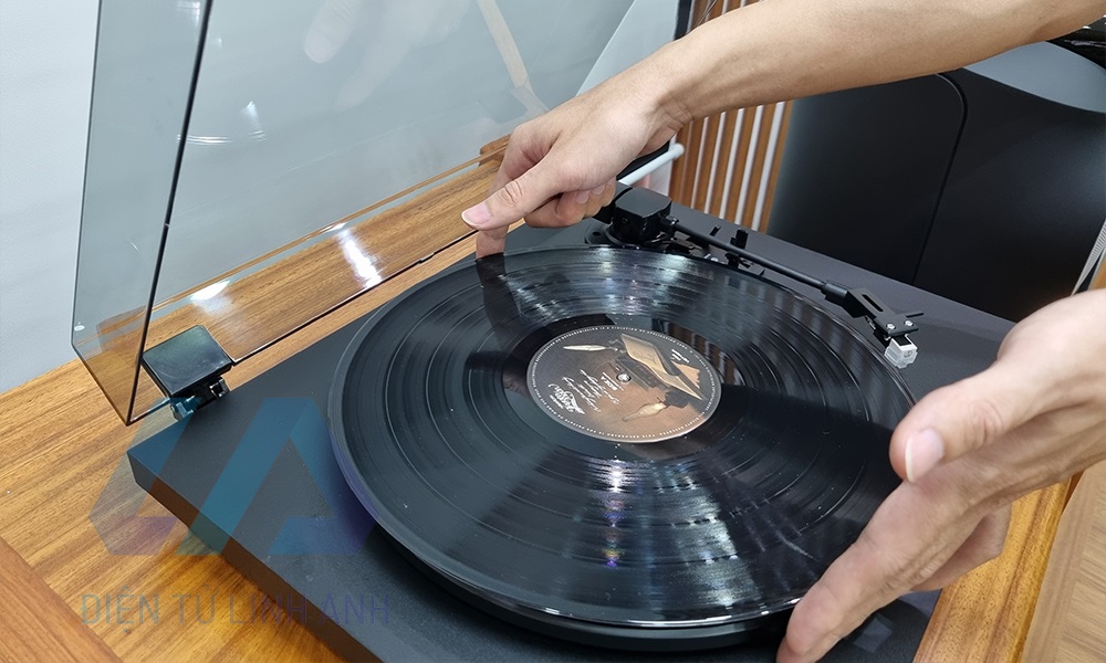Mở nắp chống bụi và đặt đĩa than lên mâm quay