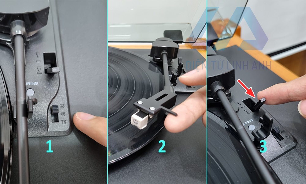 Bước 1: Chỉnh đúng tốc độ đĩa 33.3rpm với các đĩa tiêu chuẩn hiện tại