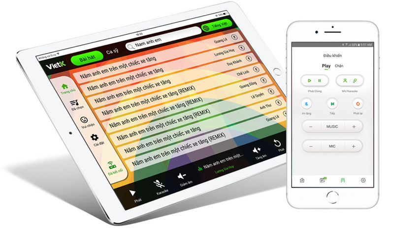 Người sử dụng có thể kết nối đầu với các thiết bị bằng điện thoại thông minh và máy tính bảng thông qua phần mềm chọn bài trên Smartphone và Tablet đã được hãng cập nhật trên kho ứng dụng của cả 2 nền tảng Android và iOS.