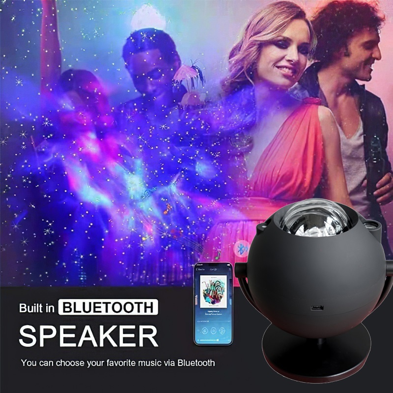 Đèn Galaxy V7 Pro được trang bị thêm chức năng kết nối Bluetooth phát nhạc từ loa gắn trên đèn sẽ giúp bạn dễ dàng vừa trải nghiệm không gian ánh sáng lung linh vừa thư giãn với những bản nhạc hay.