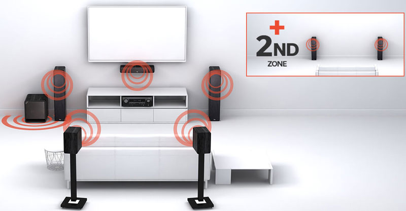 Với Denon AVR-X2700H, bạn có thể thưởng thức âm thanh vòm đa kênh tại các không gian khác nhau nhờ tính năng Multi-Source, Multi-Room. Với tính năng kết nối đa phòng từ các thiết bị âm thanh của Denon, bạn có thể thoải mái xem phim trong một không gian của mình mà không làm ảnh hưởng hay gián đoạn đến các thành viên còn lại nghe nhạc ở một khu vực khác. Sử dụng các amps bên trong để cấp nguồn cho loa hoặc sử dụng cổng pre-outs để kết nối thêm một hệ thống nghe nhạc khác.