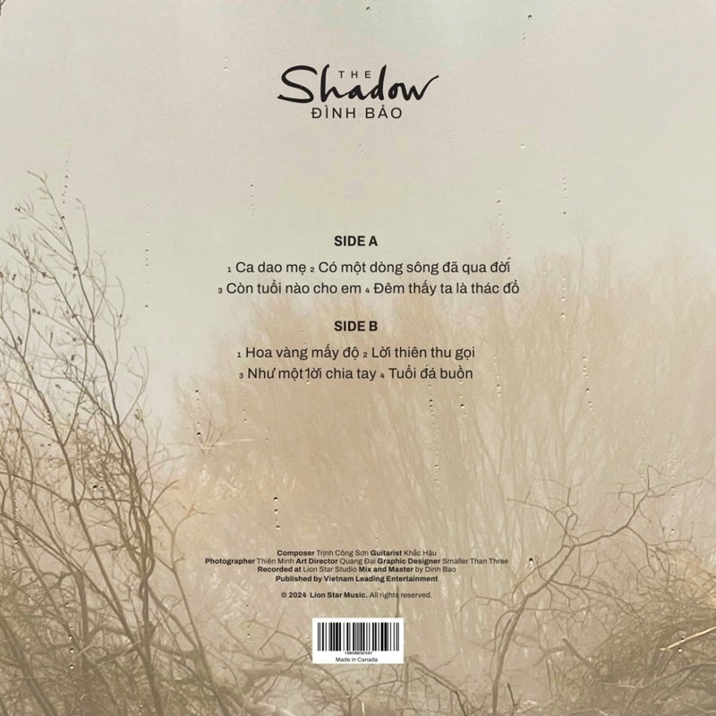Đĩa than LP The Shadow gồm 8 ca khúc quen thuộc của Trịnh Công Sơn, được ca sĩ Đình Bảo và ekip thực hiện nhân dịp kỷ niệm 23 năm ngày mất của cố nhạc sĩ.