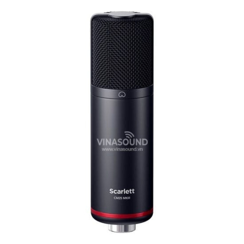 Micro CM25 MKIII đi kèm trong bộ là micro condenser màng lớn, được Focusrite tinh chỉnh cho thu vocal và nhạc cụ acoustic. Micro có độ nhạy cao, phản hồi tần số cân bằng, giúp giọng hát và tiếng đàn được tái hiện rõ ràng, tự nhiên và dễ xử lý trong quá trình hậu kỳ.