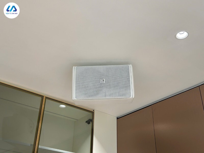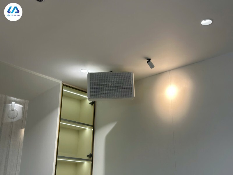 Hơn nữa, việc treo loa lên các góc nhà cũng đảm bảo sự gọn gàng, tối ưu tính thẩm mỹ. Khách hàng lựa chọn phiên bản màu trắng, giúp hệ thống hòa vào tổng thể trần và tường, tạo cảm giác đồng bộ và nhẹ nhàng hơn cho không gian.
