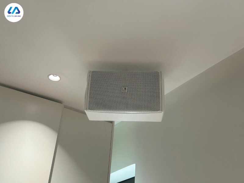 Về khả năng phủ âm, với góc phủ 90° x 70°, bốn loa được bố trí treo tại 4 góc phòng. Cách lắp đặt này giúp âm thanh lan tỏa đều khắp không gian, hạn chế điểm chết và đảm bảo sự đồng nhất về âm lượng cũng như độ rõ nét giữa các vị trí nghe khác nhau.