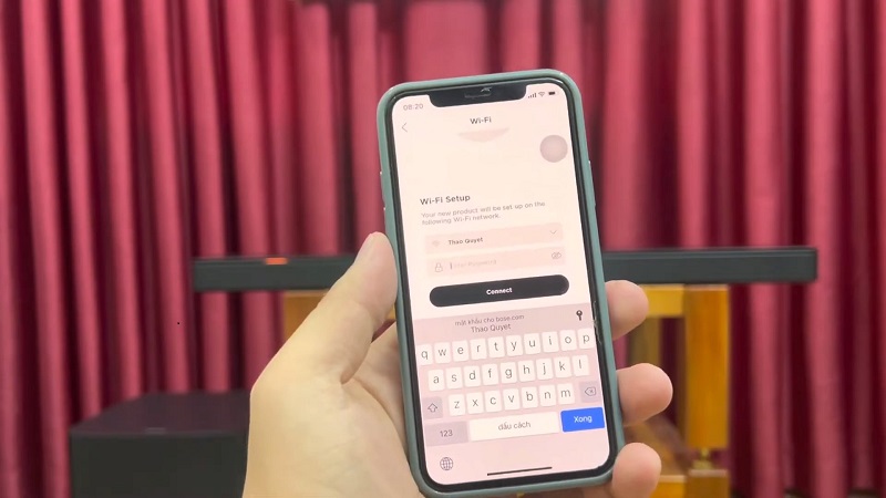 Khi được yêu cầu nhập thông tin Wi-Fi cho loa, bạn tìm kiếm và nhấn vào tên mạng Wi-fi đang sử dụng trong danh sách hiện có. Sau đó nhập mật khẩu Wi-Fi. Sau khi kết nối hoàn tất, bạn có thể điều khiển một số chức năng của loa cũng như truyền phát nhạc.