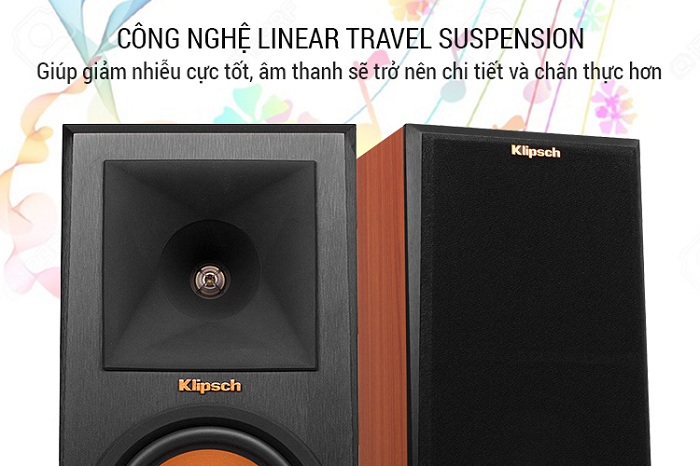 Loa Klipsch tích hợp công nghệ Linear Travel Suspension giúp giảm nhiễu cực tốt, âm thanh sẽ trở nên chi tiết và chân thực hơn.