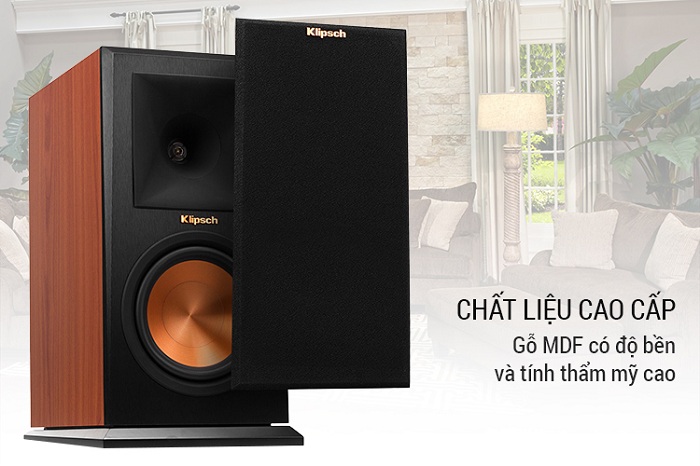 Thùng loa được làm bằng gỗ MDF có độ bền và tính thẩm mỹ cao, thích hợp với nhiều phong cách trang trí phòng khác nhau.