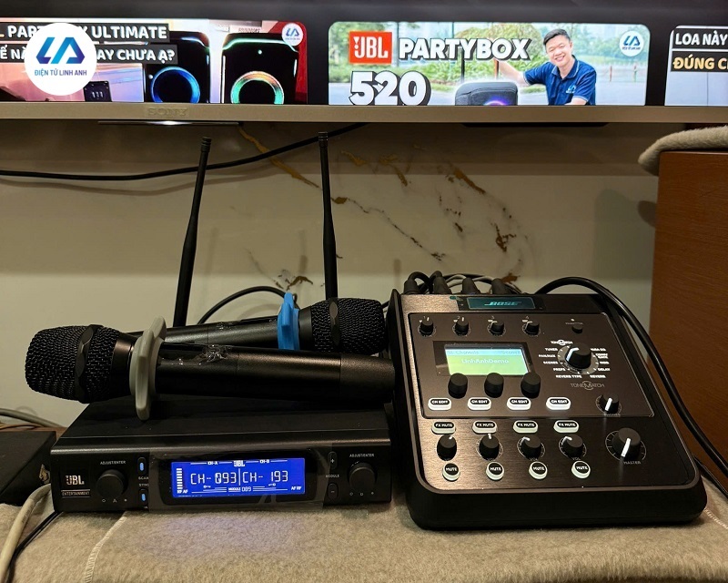 Điện tử Linh Anh lắp đặt bộ dàn karaoke hơn 100 triệu gồm Bose L1 Pro16, mixer T4S và micro JBL VM300