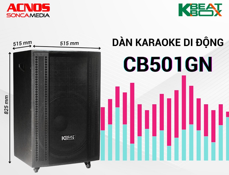 Loa karaoke biểu diễn Acnos CB501GN được thiết kế thùng gỗ sơn gai màu đen, mặt lưới đen gắn kèm bánh xe dễ dàng di chuyển. Sở hữu cấu trúc âm thanh độc đáo với 1 loa woofer 500 mm cỡ lớn và 1 tweeter cho âm thanh mạnh mẽ, trầm ấm. Công suất thực RMS 165W, hiệu suất cao và tích hợp micro UHF cao cấp không dây nhẹ hơi, giúp nâng giọng hát, karaoke, biểu diễn chuyên nghiệp.