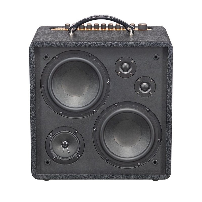 Mặt trên của loa bố trí hệ thống bảng điều khiển gồm các núm xoay đi kèm chú thích quen thuộc. Còn các cổng kết nối bố trí toàn bộ ở mặt sau đảm bảo tính thẩm mỹ gọn gàng.
