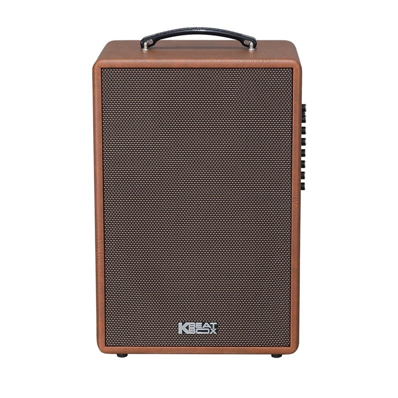 Mặt trước loa là lưới ê căng vải dệt, giúp bảo vệ hệ thống củ loa bên trong khỏi bụi bẩn, va chạm nhẹ đồng thời giữ cho tổng thể thiết kế hài hòa, liền mạch. Logo KBEATBOX được đặt ở phía dưới mặt trước, hỗ trợ nhận diện thương hiệu rõ ràng.