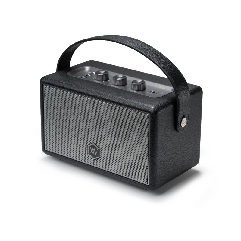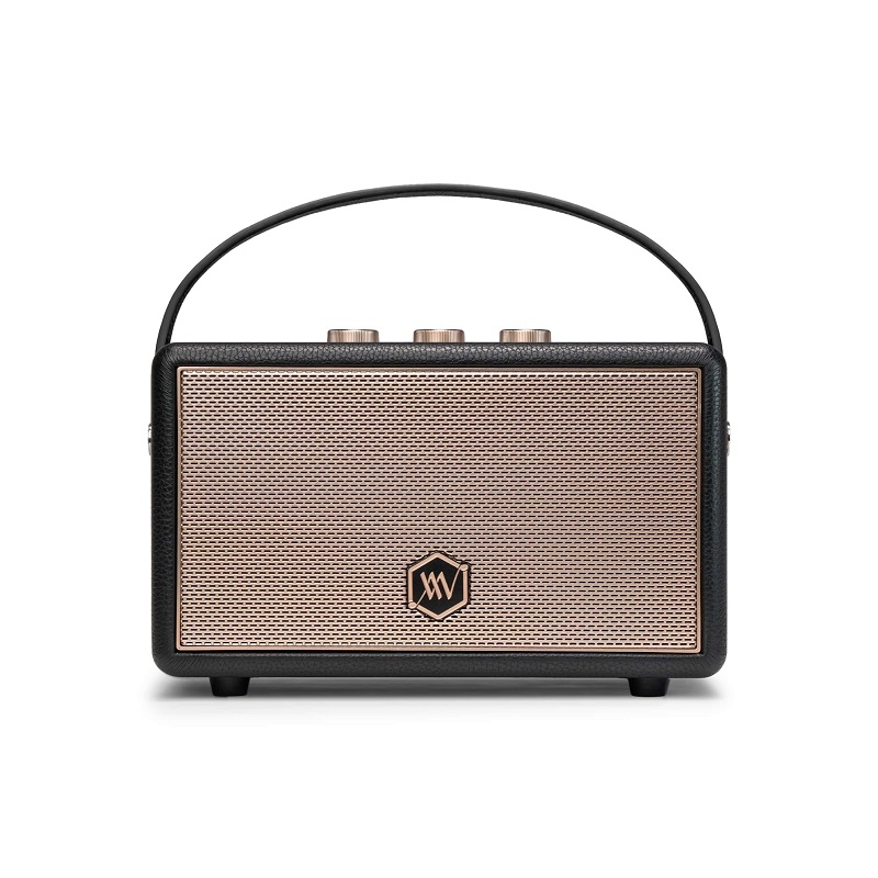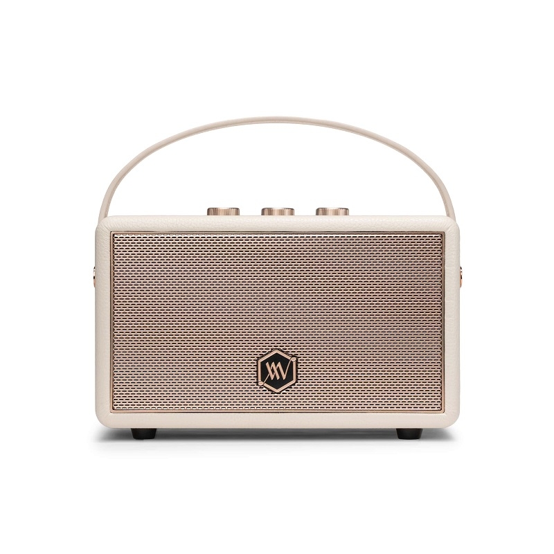 Các núm xoay điều chỉnh âm lượng, bass và treble được bố trí tinh tế ở mặt trên loa, tạo cảm giác tương tác analog rất "thật" và "chất". Với quai da gọn nhẹ, bạn có thể dễ dàng mang loa theo mọi lúc mọi nơi.