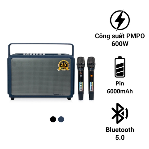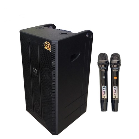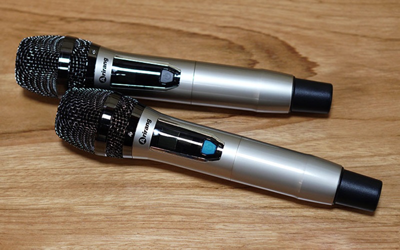 Đi kèm với loa là 2 tay micro không dây có thiết kế đẹp mắt, vỏ nhôm cao cấp cầm rất chắc tay, bắt sóng không dây ổn định từ khoảng cách xa khoảng 3m. Micro này được đánh giá cực nhạy giúp bạn hát karaoke xuất sắc hơn rất nhiều. Hệ thống đèn led trên micro thể hiện rõ các tính năng điều khiển, việc lắp đặt điều khiển tương đối dễ dàng.