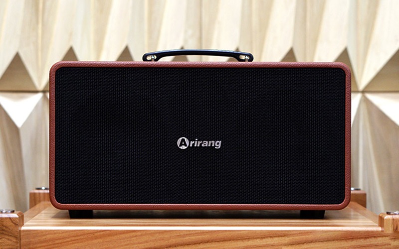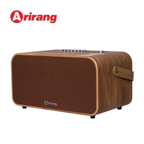 Chiếc loa kéo này có kiểu dáng hình hộp chữ nhật nằm ngang với các góc bo tròn tinh tế, được bọc da nâu vô cùng cao cấp. Loa có kích thước 330 x 370 x 535 mm và trọng lượng 12,5 kg cùng hệ thống dây đeo rất đẹp và chắc chắn, bạn có thể di chuyển nó một cách dễ dàng, tiện lợi để mang theo trong các chuyến đi dài mà không cảm thấy bất tiện. Mặt trước của loa là lớp ê căng cao cấp với logo Arirang ở giữa không chỉ giúp bảo vệ hệ thống loa bên trong mà còn tăng tính thẩm mỹ cho tổng thể. Ngoài ra, hệ thống bảng điều khiển được mạ vàng, các cổng kết nối ở mặt sau rất thuận tiện cho người dùng thao tác.