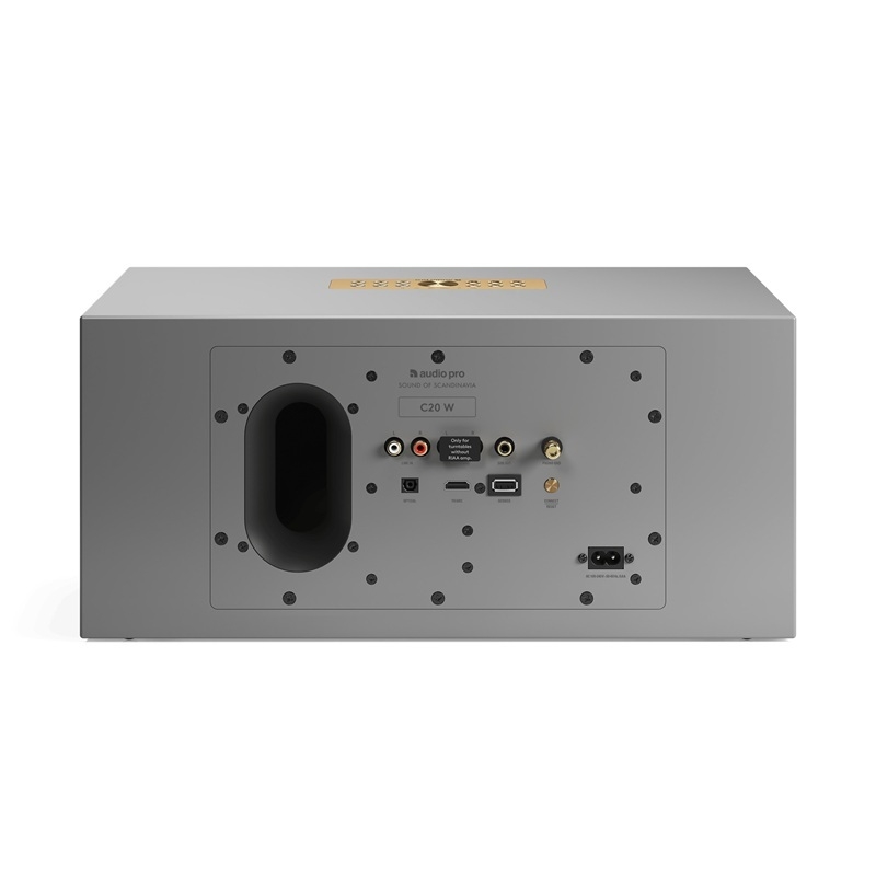 Audio Pro C20 W hoạt động như một trung tâm âm thanh độc lập với đầy đủ cổng kết nối ở mặt sau: