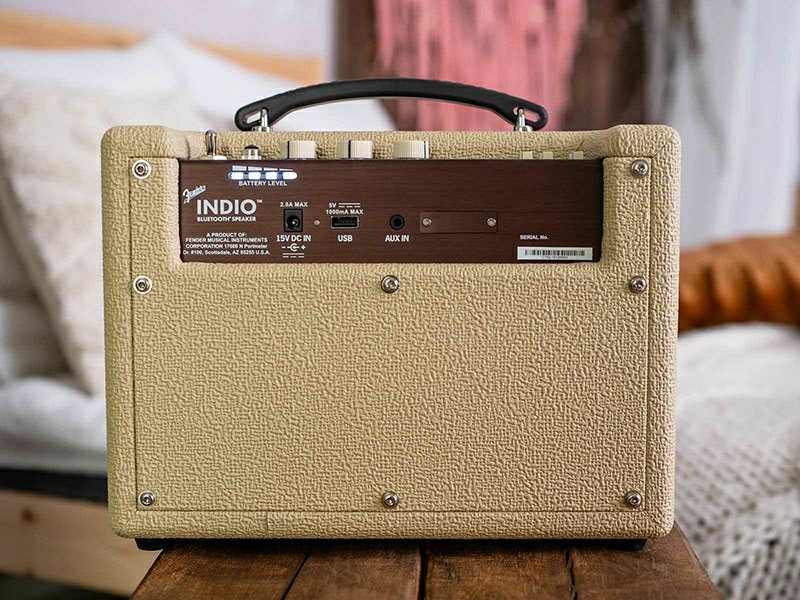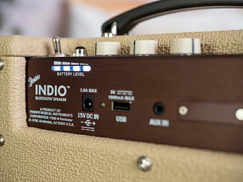 Chúng ta cũng sẽ lại bắt gặp các bảng điều khiển mang phong cách đặc trưng của Fender, nổi bật là bộ ba núm xoay điều chỉnh âm lượng, bass và treble. Cũng như 2 sản phẩm trước, cái tên Indio của mẫu loa di động mới được lấy từ tên của thành phố đã tổ chức sự kiện âm nhạc ngoài trời nổi tiếng “Coachella Valley Music and Arts Festival”.