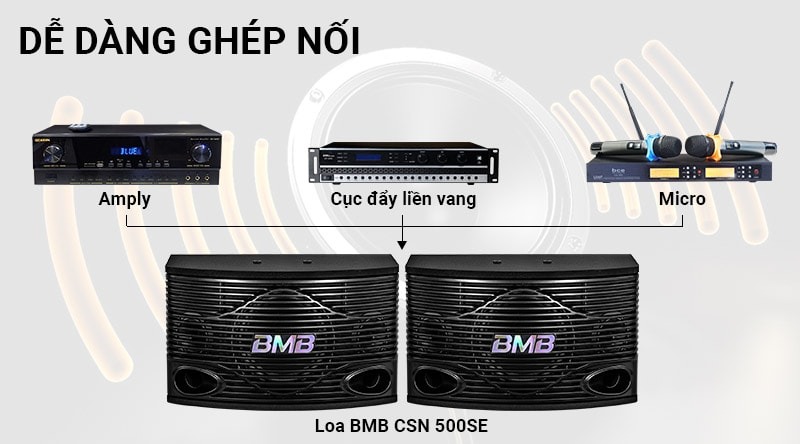 Loa BMB CSN 500 (SE) cũng được thiết kế để phối ghép hoàn hảo với nhiều thiết bị âm thanh khác nhau như amply, micro,...mang lại trải nghiệm âm nhạc toàn diện và đầy đủ. Với những tính năng, CSN 500 (SE) không chỉ là một sản phẩm âm thanh xuất sắc mà còn là một phần không thể thiếu của bất kỳ hệ thống âm thanh chuyên nghiệp nào.
