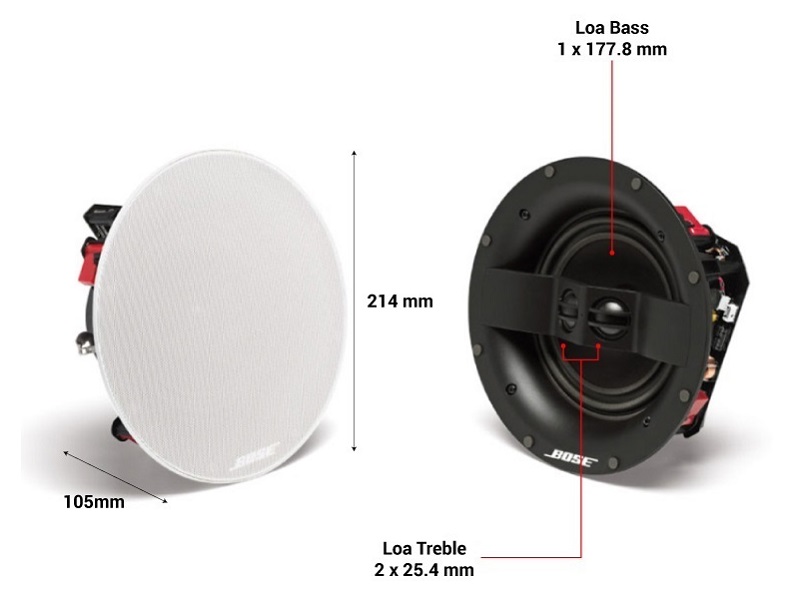 Với việc trang bị nón loa Woofer 177.8 mm hiệu suất cao và 2 loa Tweeter 25.4 mm được bố trí hợp lý trên khung. Các củ loa được gắn đồng trục, hỗ trợ giảm chấn bên trong khả năng kéo âm mượt mà đồng thời nâng cao khả năng xử lý điện năng. Cùng với khả năng giảm nén công suất hiệu quả, loa âm trần đảm bảo mang lại dải âm rõ ràng & sắc nét hơn.
