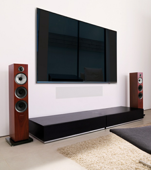 Loa B&W 704 S2 đặt tại phòng khách, khả năng kết nối TV truyền tải âm thanh tốt