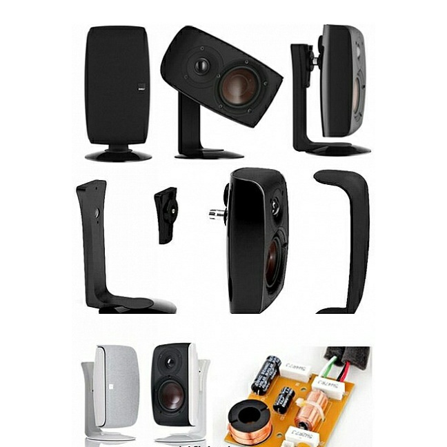 Loa được đi kèm với giá để bàn tiện dụng, dễ dàng đặt trên bàn TV, kệ sách, ... Thân tủ cong và thanh lịch là sự kết hợp giữa nhôm sơn mài bóng cao cấp và vật liệu composite làm vách ngăn. Bề mặt của vách ngăn được xử lý bằng lớp phủ cao su tạo cảm giác mịn màng, trang nhã. Lưới tản nhiệt được giữ cố định bằng nam châm, cho phép tháo lắp nhanh chóng, dễ dàng. Loa vệ tinh đơn giản và phong cách.