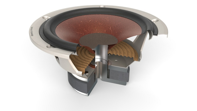 Loa woofer được chế tạo từ hỗn hợp giấy hạt mịn và bột sợi gỗ. Chất liệu này tạo ra các rãnh nhỏ, cùng với trọng lượng rất nhẹ giúp giảm thiểu cộng hưởng không mong muốn trên bề mặt. Những chi tiết nhỏ như góc của nón sợi gỗ và kích thước của nắp che bụi cũng được tối ưu hóa để tích hợp, phân tán và tạo ra hiệu suất tốt nhất.
