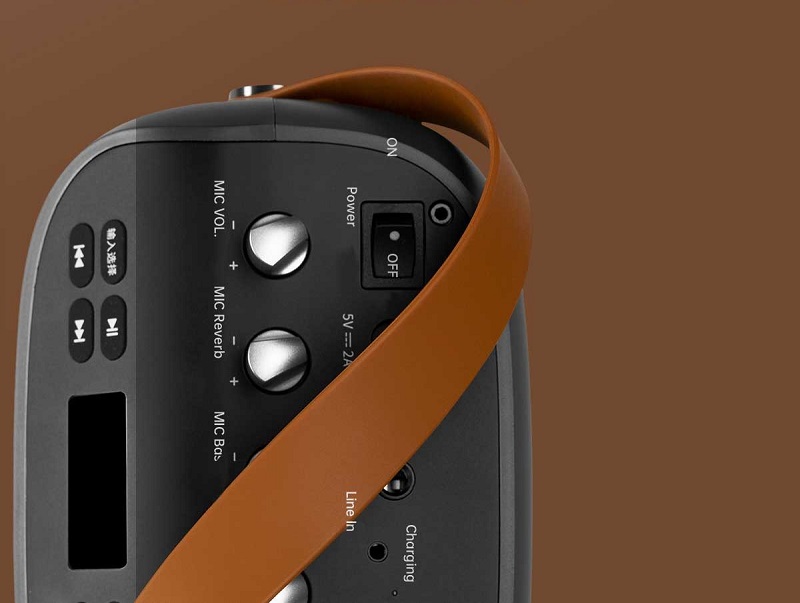 Các nút điều chỉnh được đặt ở mặt trước của loa. Các nút tinh chỉnh có dạng núm vặn: bass, treble, hiệu ứng reverb của microphone được bố trí theo hàng ngang, dễ sử dụng.
