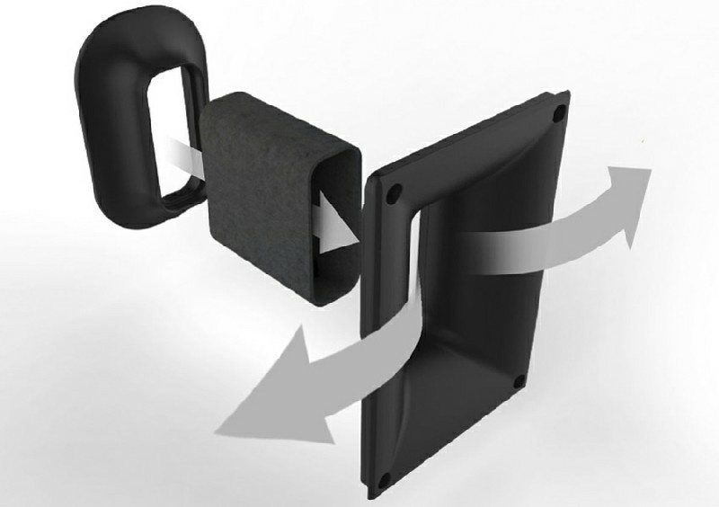 Nhờ cổng thoát hơi hình ở phía trước, bạn có thể dễ dàng làm đẹp gian phòng mà hoàn toàn không phải lo lắng về việc bị dội âm ù nền khi tùy ý đặt loa sát tường cho gọn chỗ để. Thêm vào đó, dạng họng kèn của cổng thoát hơi hình oval này giúp các áp âm cộng hưởng bên trong thùng loa được giải phóng nhanh và không bị hiện tượng hồi tiếp, giảm thiểu tiếng ồn tần số thấp cho tiếng bass chính xác, mạnh mẽ và chắc gọn dù loa hoạt động liên tục ở cường độ lớn.