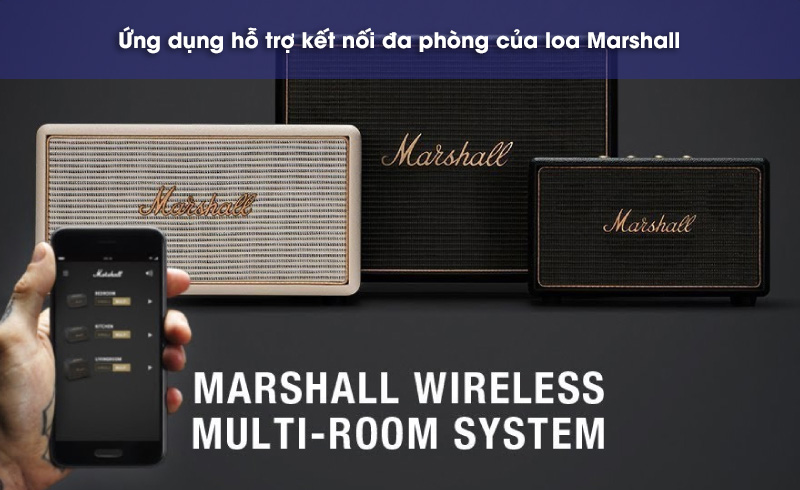 Bạn có thể thông qua ứng dụng Marshall Multi-room App để liên kết các loa trong bộ sưu tập Multi-room như Woburn Multiroom hay Acton multiroom của Marshall để thưởng thức âm nhạc ở bất cứ đâu trong nhà.
