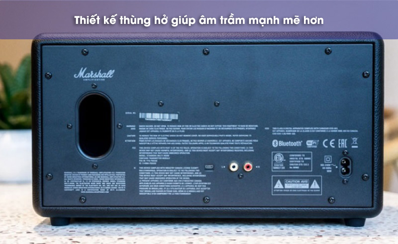 Về chất liệu, loa Stanmore Multiroom được cấu thành từ thùng loa bằng gỗ ốp nhựa ở sau lưng rất chắc chắn, vỏ bọc bằng da chống thấm tốt, ê căng kim loại thép cứng cáp giúp loa bền bỉ trước mọi tác động vật lý từ môi trường.