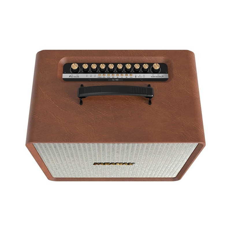 Các chi tiết trên loa hoàn thiện chỉn chu từ ê căng bảo vệ phía trước cho đến bảng điều khiển. Thiết kế loa theo hướng linh hoạt và thẩm mỹ, dễ dàng hòa hợp nhiều môi trường khác nhau.