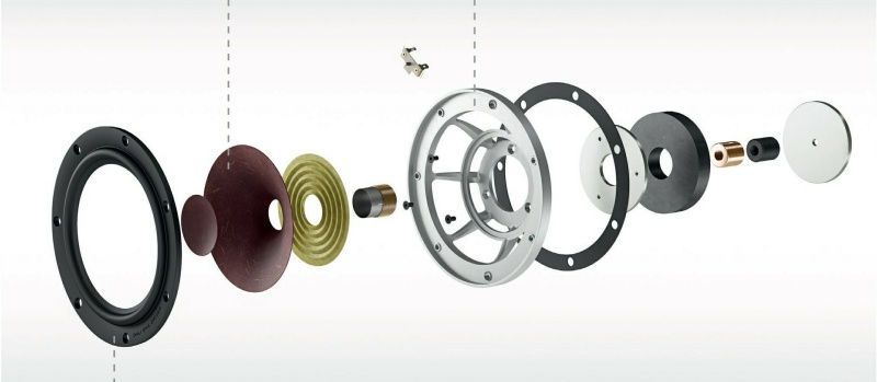 Các hình nón được sử dụng trong RUBICON 8 dựa trên công nghệ EPICON có cấu trúc nhẹ, cứng. Điều này làm giảm độ phức tạp trong phần trung tâm của động cơ, đảm bảo chuyển động đều như piston, giảm khả năng cộng hưởng bề mặt đáng kể và tạo ra độ méo cực thấp. Vòm cao su mềm ít tổn hao được thiết kế riêng cho RUBICON 8, trong đó tất cả các bộ phận đều nằm trong khung nhôm để tạo ra luồng không khí tối đa xung quanh hình nón và hệ thống nam châm.
